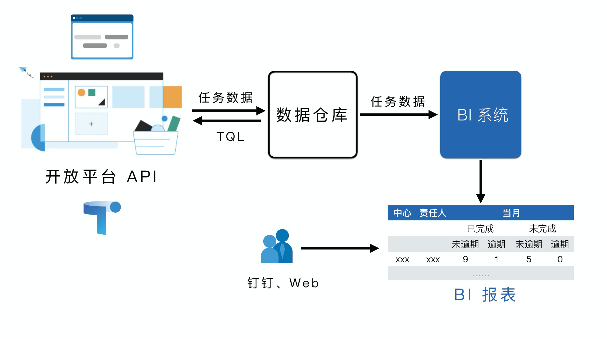 数据仓库根据Teambition开放平台API获取相关任务和企业组织架构数据,ΒΙ根据要求灵活定制,⽣成准实时报表,节省⼤量⼯作量的同时⼜保障了数据的准确性,Teambition为更好地践⾏“柒牌⾼效办事准则”提供数据⽀持。
