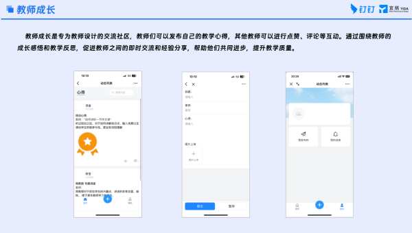 教师成长:教师成长是专为教师设计的交流社区,教师们可以发布自己的教学心得,其他教师可以进行点赞、评论等互动。通过围绕教师的成长感悟和教学反思,促进教师之间的即时交流和经验分享,帮助他们共同进步,提升教学质量。